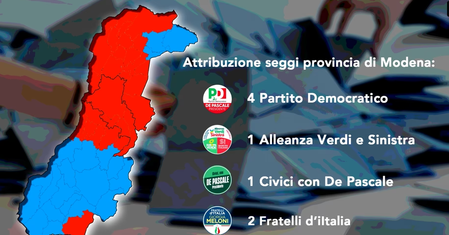 MODENA – L’analisi del voto divide la provincia di Modena a metà, con l’appennino a maggioranza centrodestra, fatta eccezione per Fanano, mentre dalla fascia pedemontana alla bassa domina il centrosinistra che torna a vincere a Mirandola e recupera a Finale, San Felice e Camposanto. Pieno di voti, soprattutto per il Partito Democratico, nei grandi centri: oltre il 48,5% dei voti a Modena e Carpi, più del 50% a Castelfranco Emilia. Per il sindaco del capoluogo Massimo Mezzetti l’astensionismo ha pesato, ma soprattutto sul centrodestra.